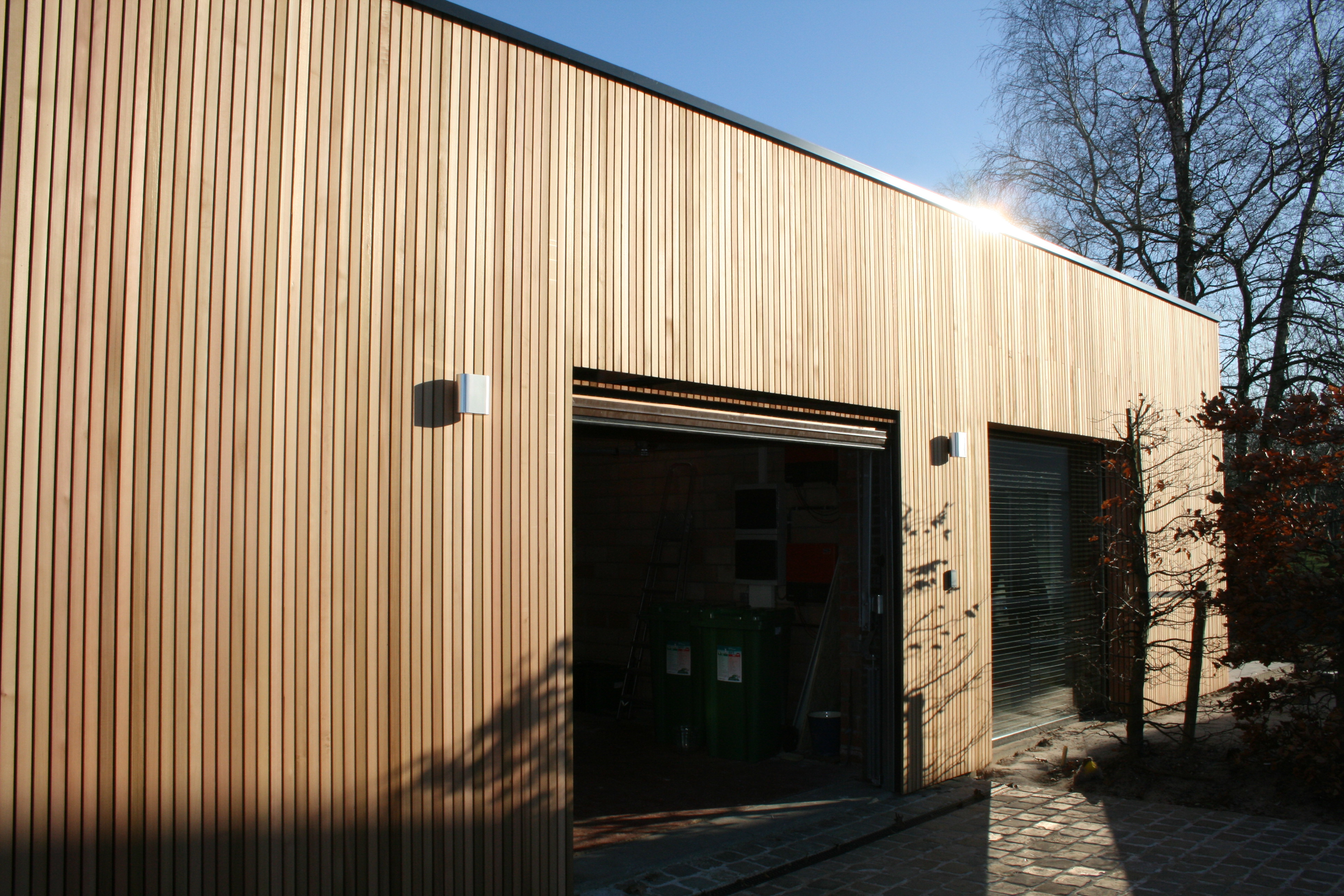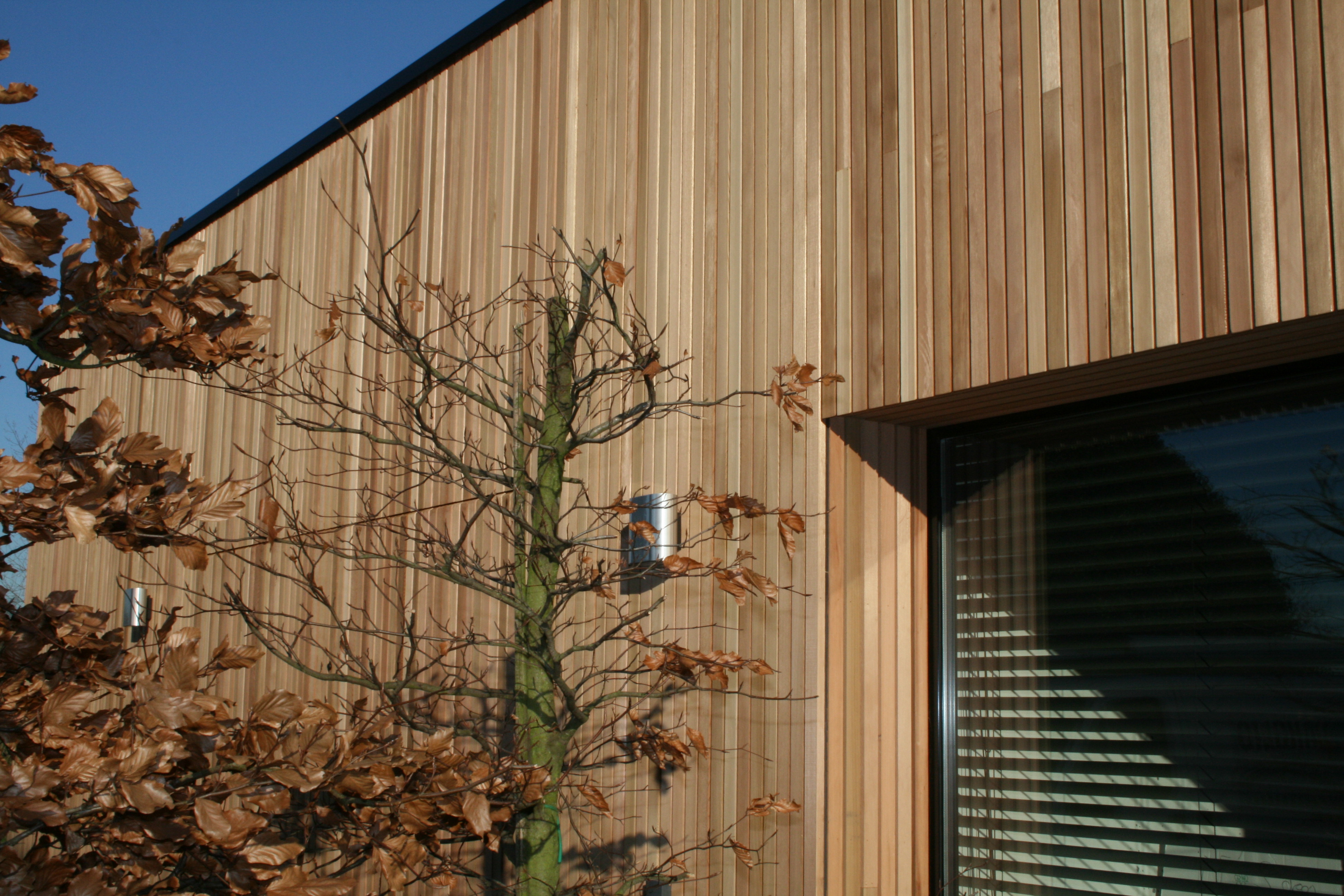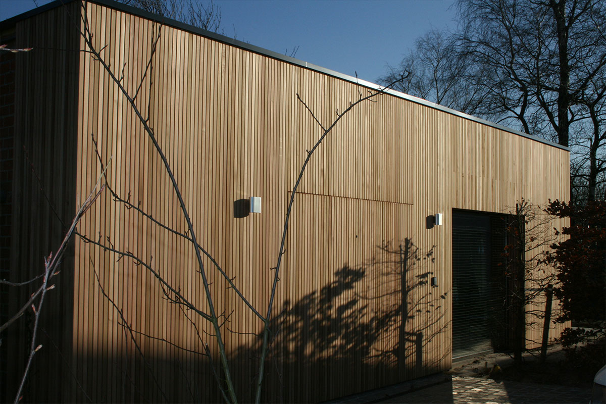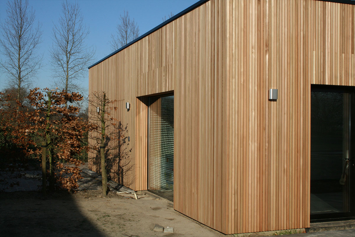 Open gevelbekleding in Cederlatten, 20x45mm.