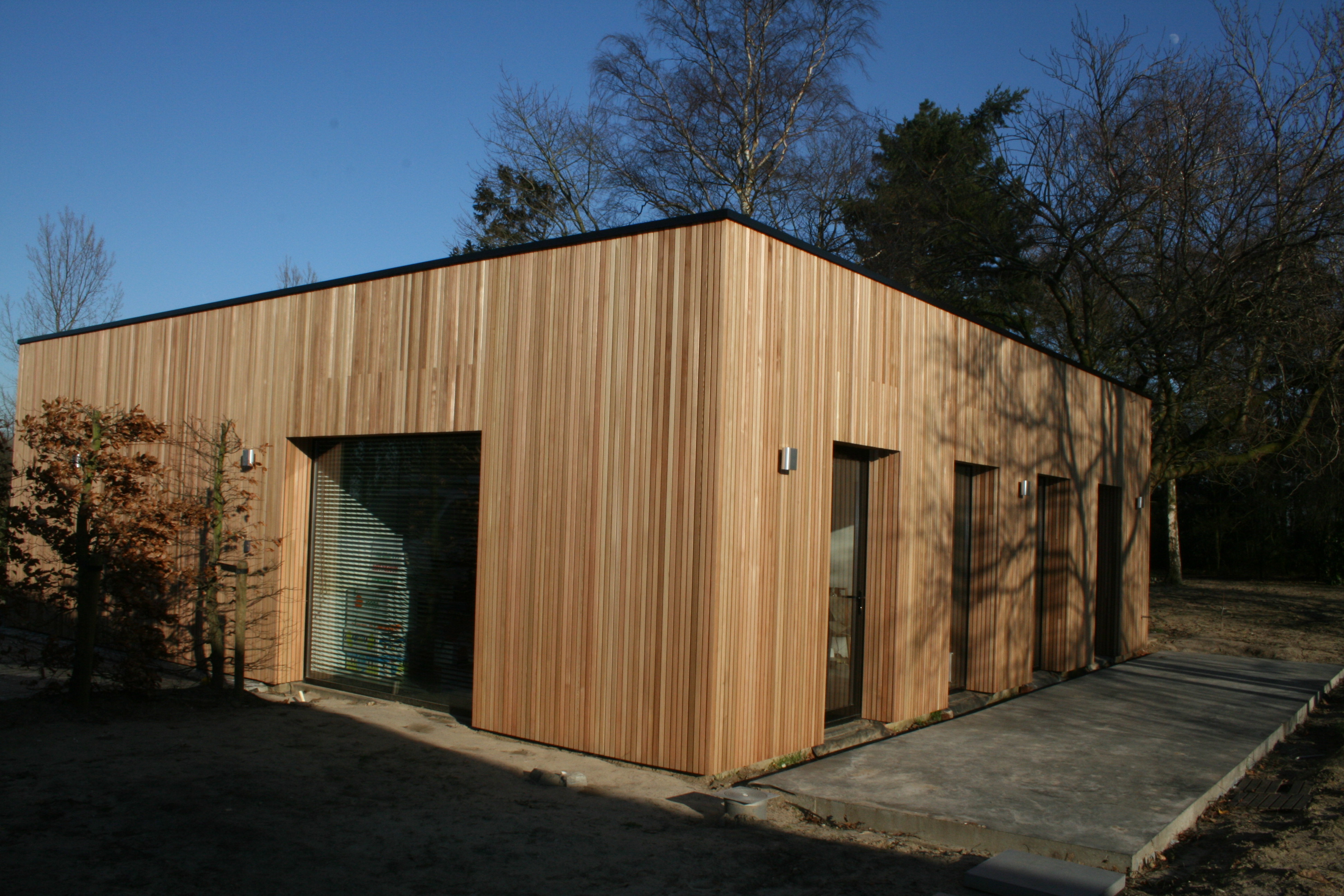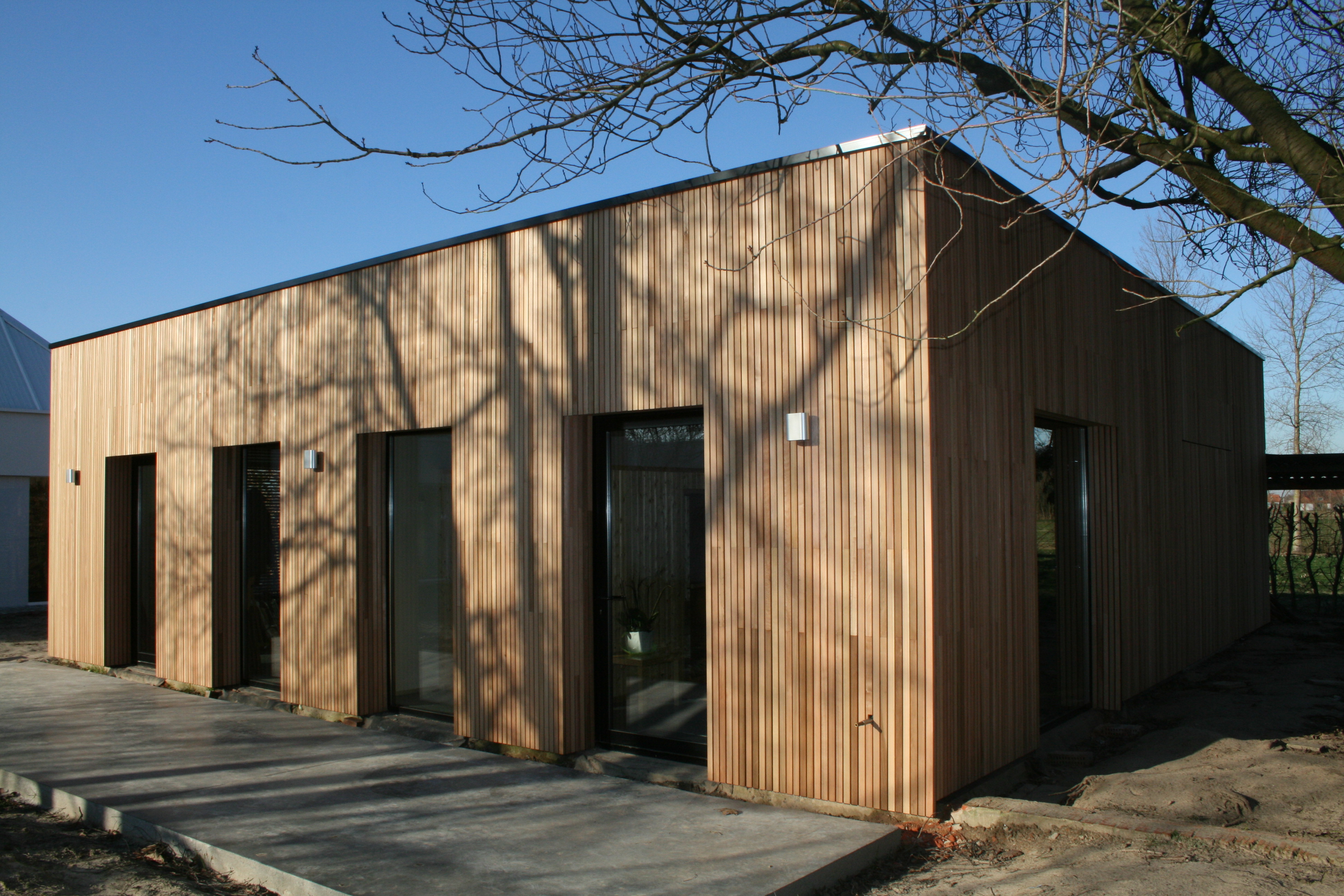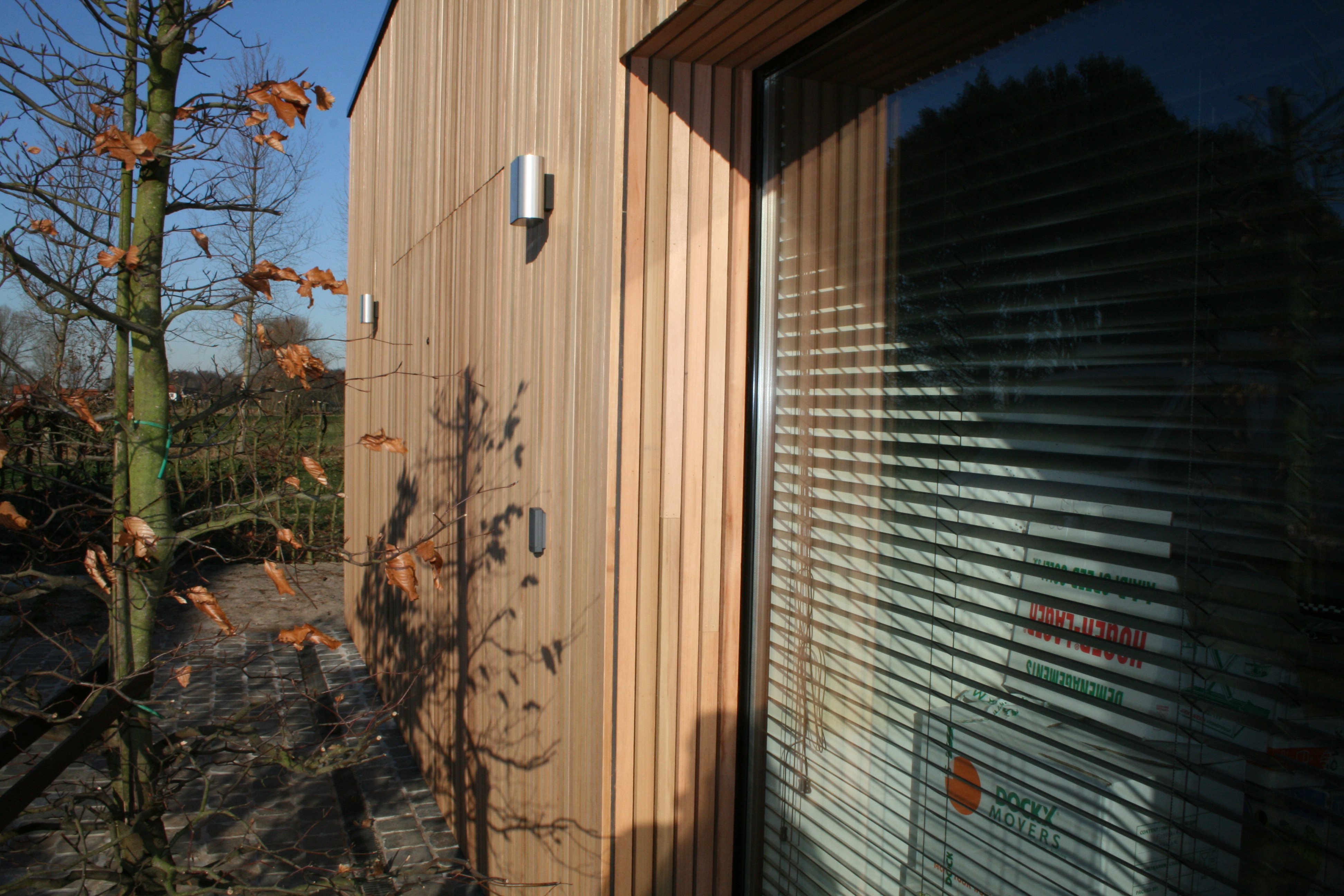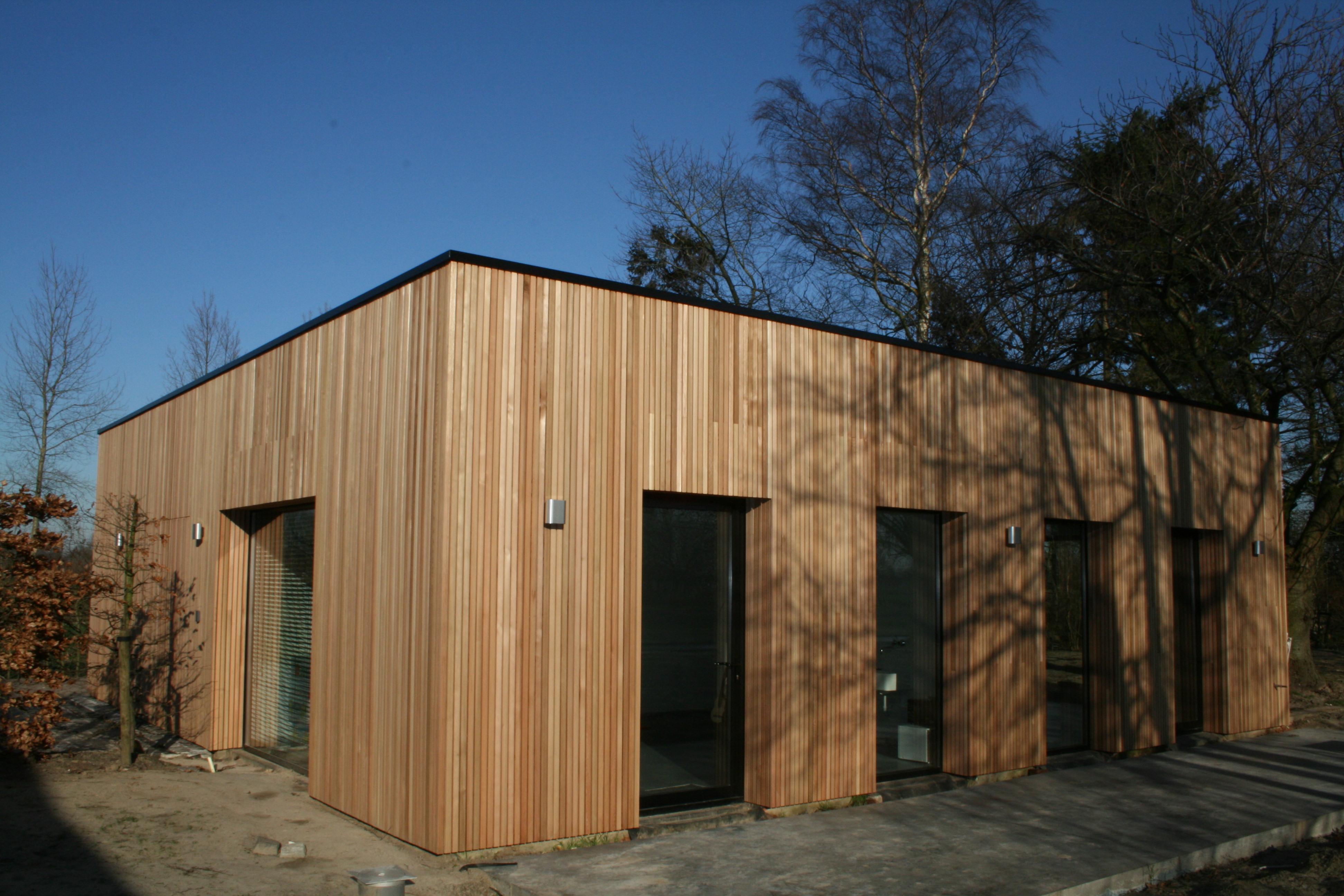 Open gevelbekleding in Cederlatten, 20x45mm.