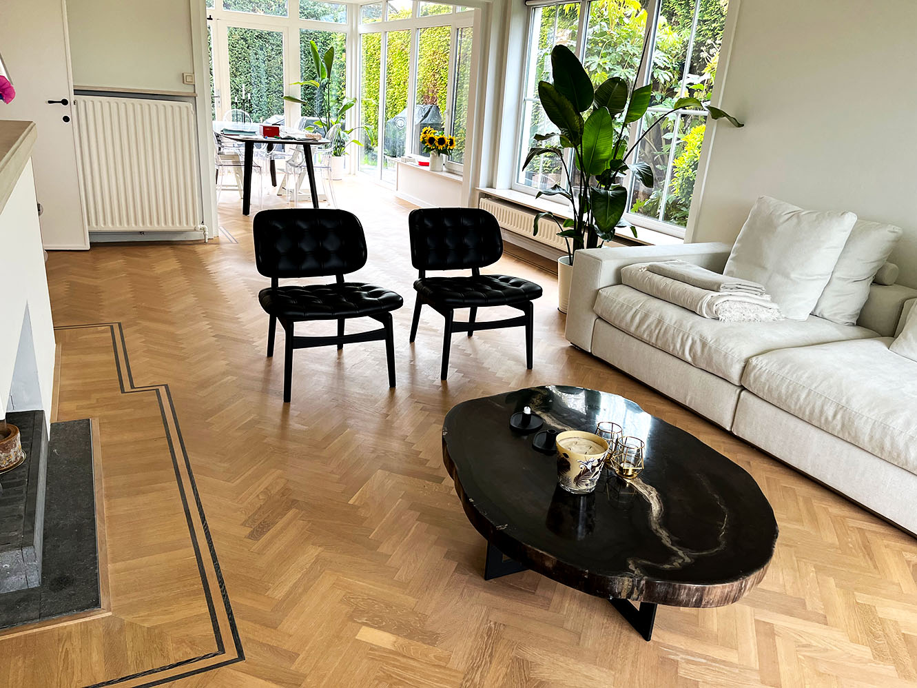 Het bestaand parket in het woongedeelte hebben we gerenoveerd en opgeschuurd.