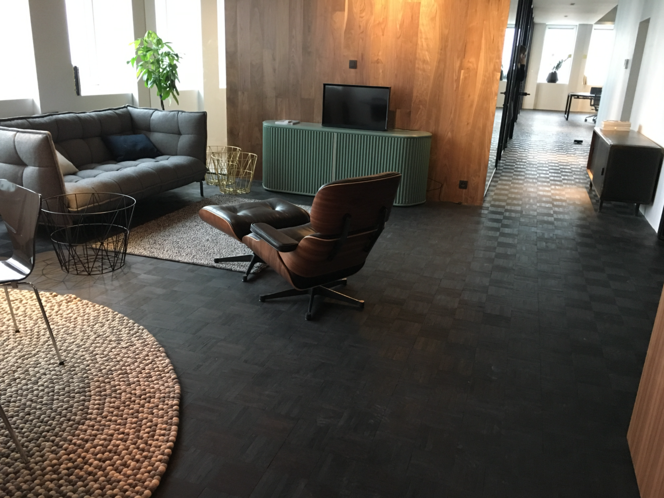 Parketvloer geplaatst in opdracht van BBSC-Architecten in hun nieuwe kantoor op het 9e verdiep van de ” Electrabeltoren “, tegenwoordig I love WATT genoemd. Aan de bekende gevel, ontworpen door architect Leon Stynen, is niets veranderd.