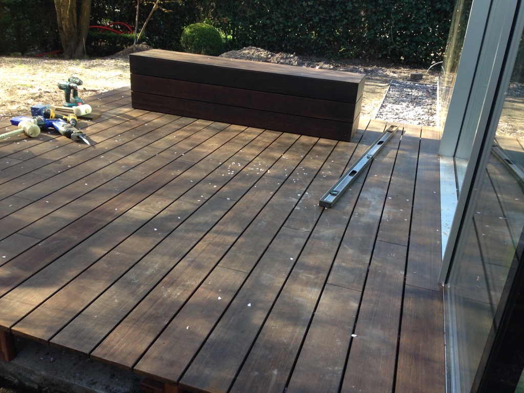 Bamboo Xtreme, een uiterst duurzame en ecologische keuze voor buitentoepassingen. De planken zijn blind bevestigd op een hardhouten onderconstructie op regelbare terrasdragers.